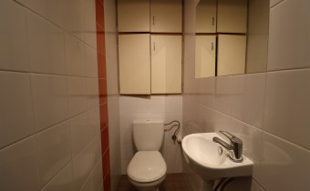 W łazience i toalecie glazura nowszego typu, na podłogach terakota.
